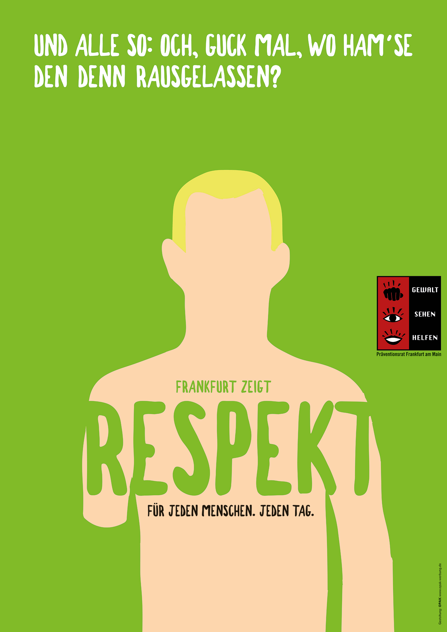 Wie ich anfangs erwähnt habe, die Kampagne ist wichtig und ich bin dankbar für die Bemühungen des Präventionsrates. Im Großen und Ganzen ist es aber definitiv ungelungen und sollte überarbeitet werden. Herr Frank, ich verstehe Ihre Kritik, aber eine Werbeagentur wie Opak, die in der Vergangenheit vielleicht hervorragende Arbeit geleistet hat, kann heute kritisiert werden, wenn sie dieses Mal falsch liegt, und das müssen wir auch tun.