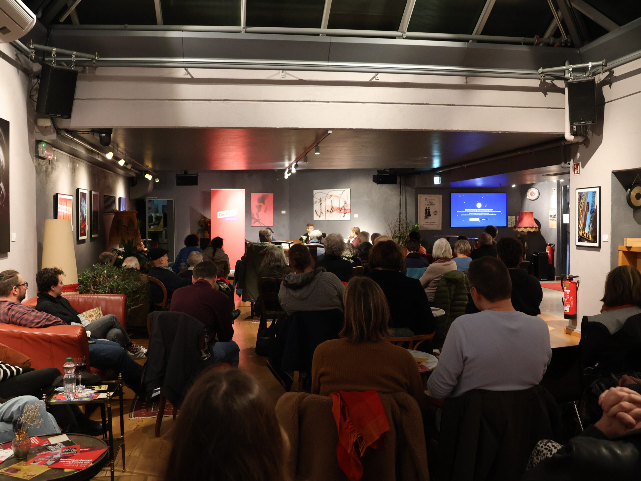 Dennis Eversberg, Umweltsoziologe an der Goethe-Uni, ordnete die Entwicklung der Klimabewegung ein. Die Pandemie hat viel ausgebremst, und das rächt sich jetzt. Vieles, was innerhalb der Logik kapitalistischer Modernisierung möglich war, ist abgearbeitet – jetzt bräuchte es echten, tiefgreifenden Wandel. Doch genau davor drücken sich viele, gerade die, die von ihrem Besitzstand profitieren. Er machte deutlich: Wir brauchen ein Bewusstsein für gemeinsame Klasseninteressen und für eine Infrastruktur, die ein gutes, gemeinschaftliches und klimafreundliches Leben für alle ermöglicht. Das wäre nicht nur nachhaltiger, sondern auch gerechter – und eine Antwort auf die Verunsicherung vieler Menschen.
